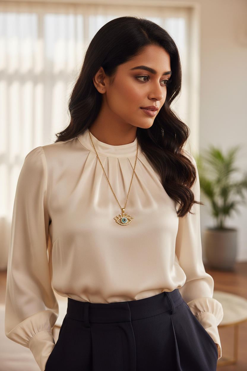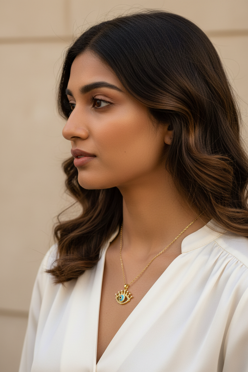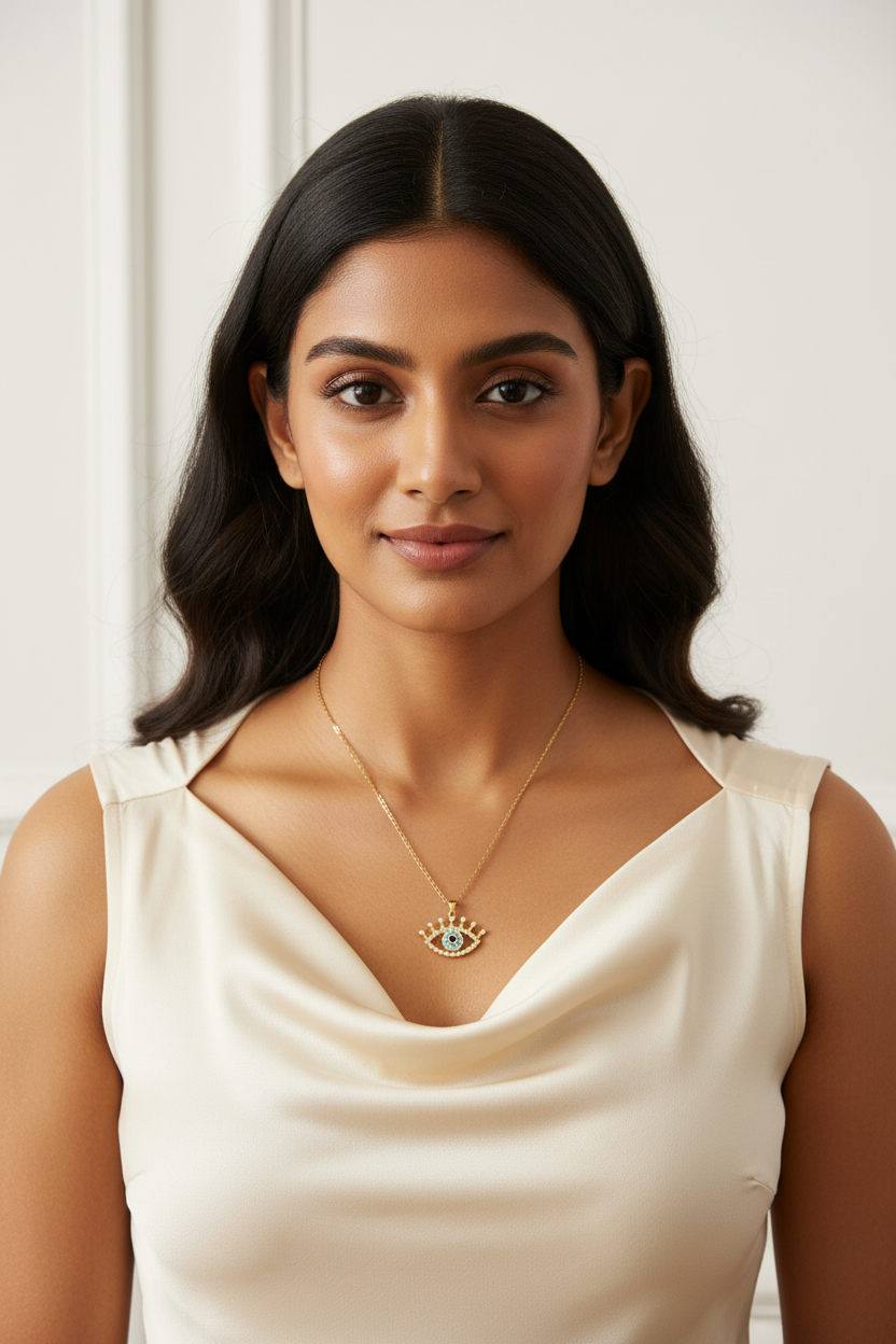 Radiant Evil Eye Necklace Luxe Iced-Out Evil Eye Charm Necklace – Gold Plated Stainless Steel with Sparking Zirconia Inlays