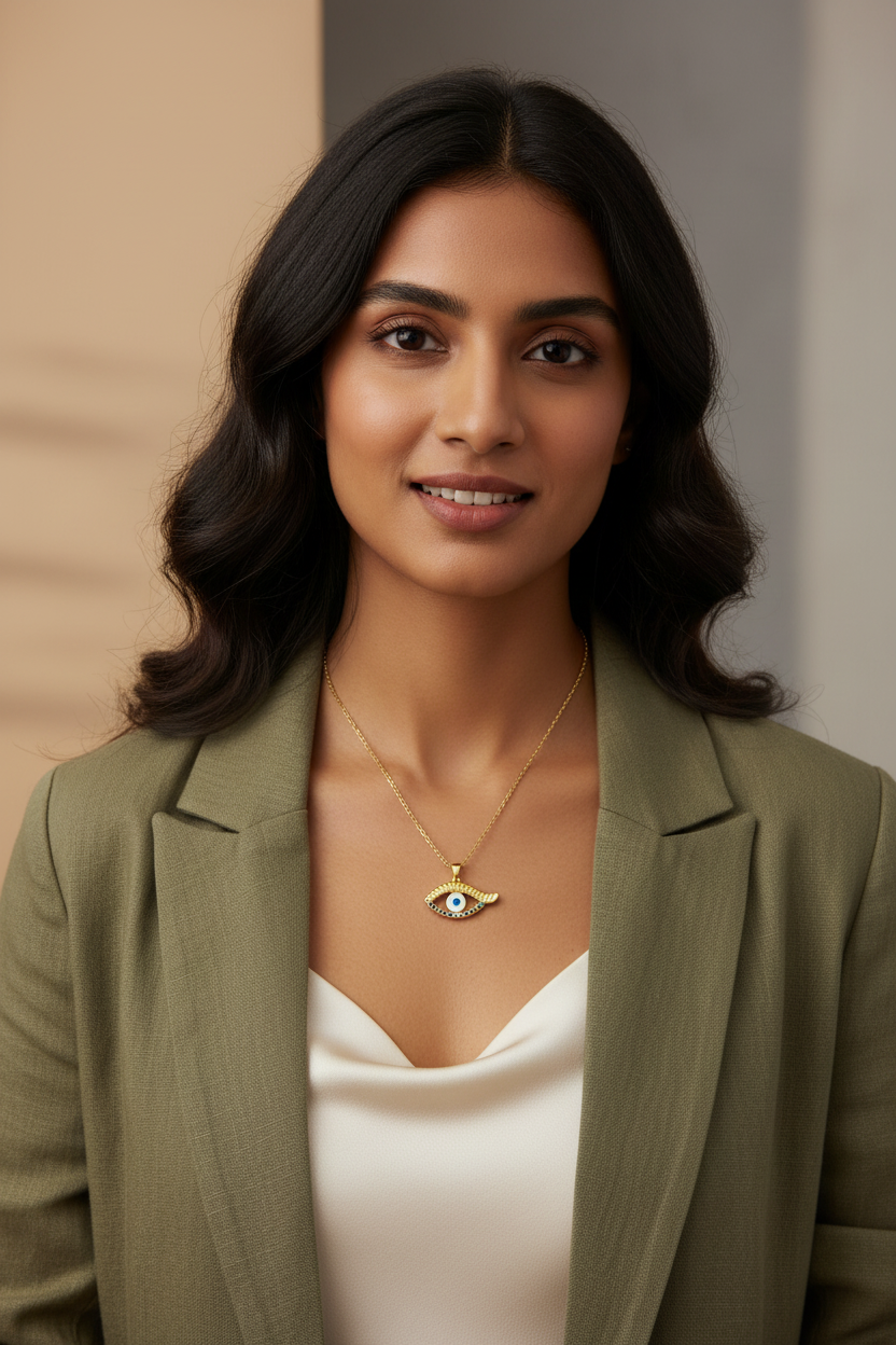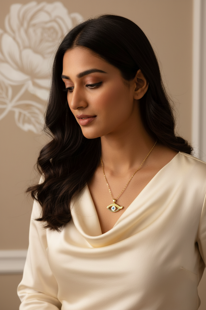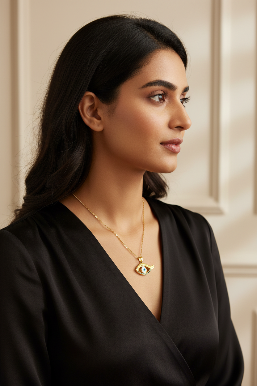 Sleek Evil Eye Necklace Modern Evil Eye Protection Pendant Necklace—Gold Stainless Steel with Colorful Accents and Enamel Eye