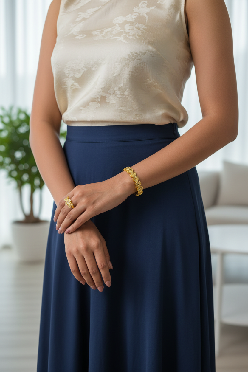 Leaf Motif Bangle & Ring Set: