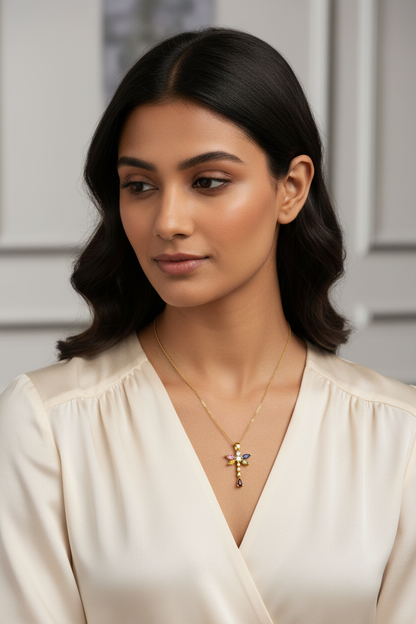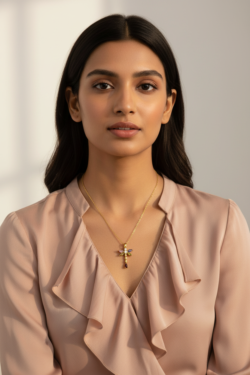 Vibrant Petal Necklace Multi-Color Marquise Crystal Flower Necklace – Elegant Gold Tone Stainless Steel Dainty Floral Jewelry