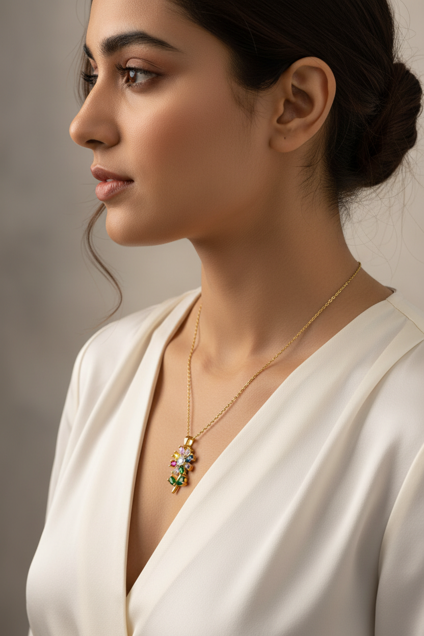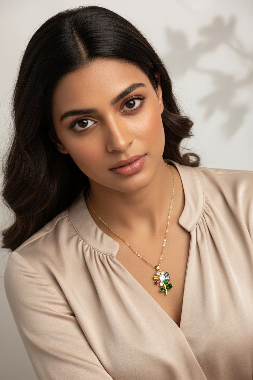 Multi-Color flower Necklace Dainty Rainbow Crystal Necklace Gold Tone Stainless Steel Floral Jewelry For Women